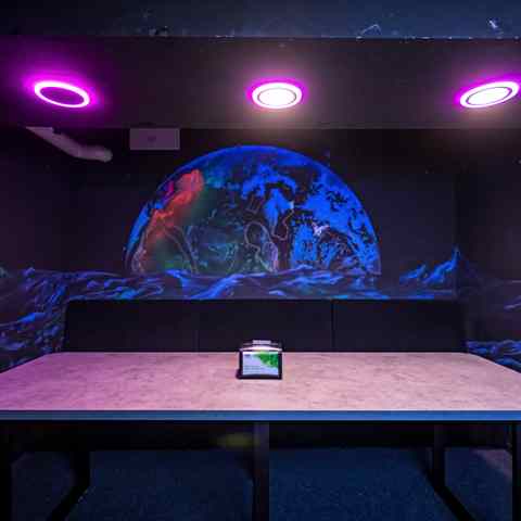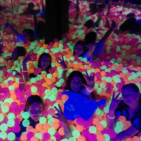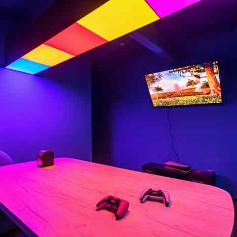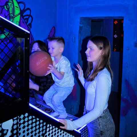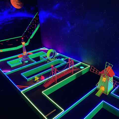 В неоново-развлекательном центре ни один посетитель не останется без дела, ведь досуг найдется для каждого. Любители спорта по достоинству оценят 12 светящихся дорожек мини-гольфа, аэрохоккей, аэрофутбол, автомат «Баскетбол» или игры на координацию. Ощутить драйв и получить дозу адреналина можно на гоночном мотостимуляторе или с помощью шлемов виртуальной реальности. Для релаксации гости могут погрузиться в сухой бассейн со светящимися шарами.