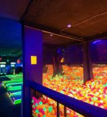 В неоново-развлекательном центре ни один посетитель не останется без дела, ведь досуг найдется для каждого. Любители спорта по достоинству оценят 12 светящихся дорожек мини-гольфа, аэрохоккей, аэрофутбол, автомат «Баскетбол» или игры на координацию. Ощутить драйв и получить дозу адреналина можно на гоночном мотостимуляторе или с помощью шлемов виртуальной реальности. Для релаксации гости могут погрузиться в сухой бассейн со светящимися шарами.