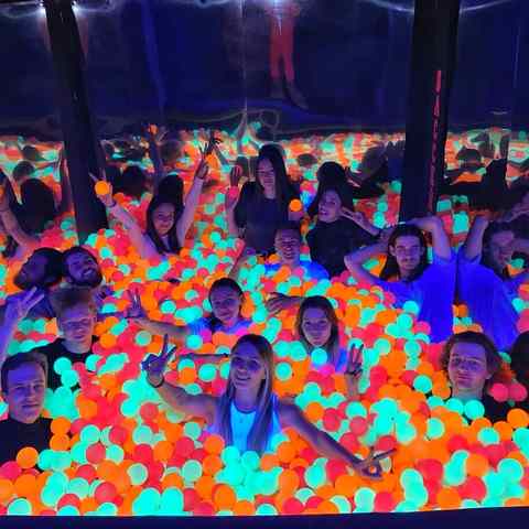 Сухой бассейн со светящимися шарами